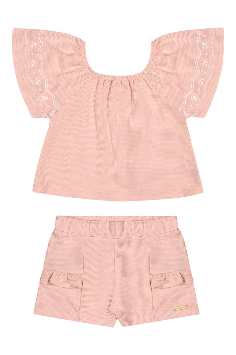 Conjunto Infantil Menina Tricô Manga Ampla Colorittá Rosa REF: 73277-4119
