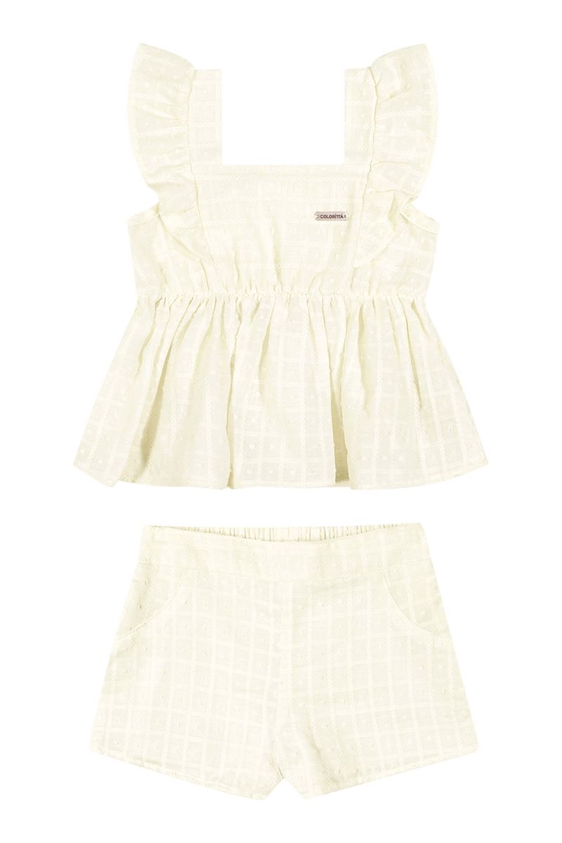 Conjunto Infantil Menina Textura Quadriculada Colorittá Bege REF: 73278-2037
