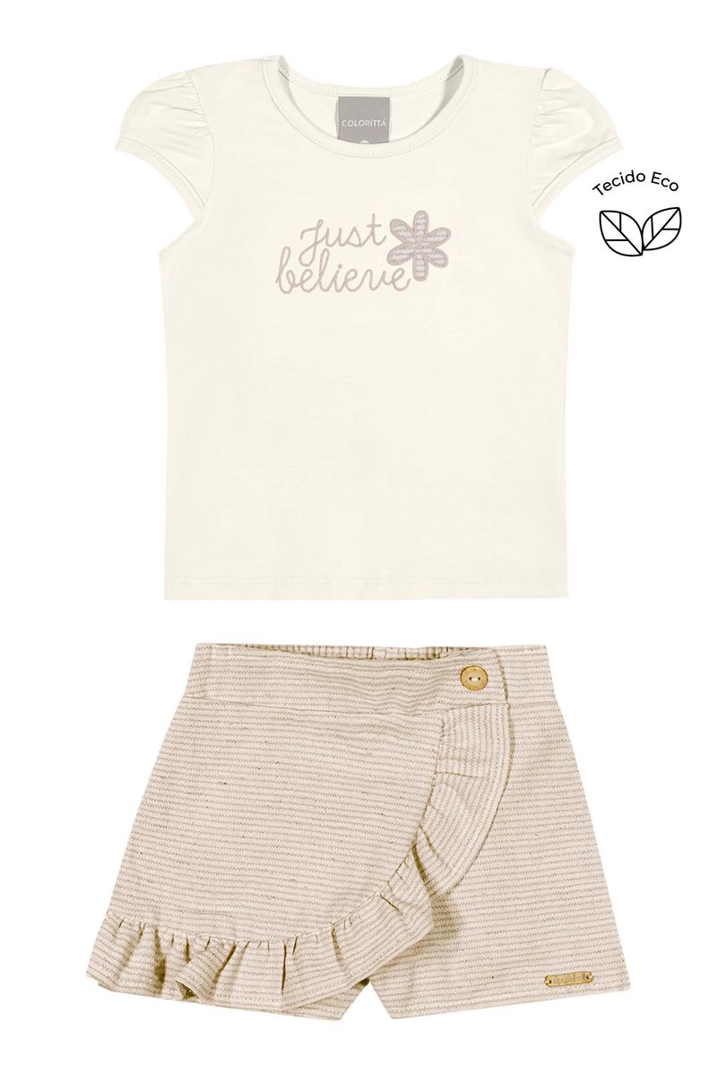 Conjunto Infantil Menina Com Bordado Colorittá Bege REF: 73279-2037
