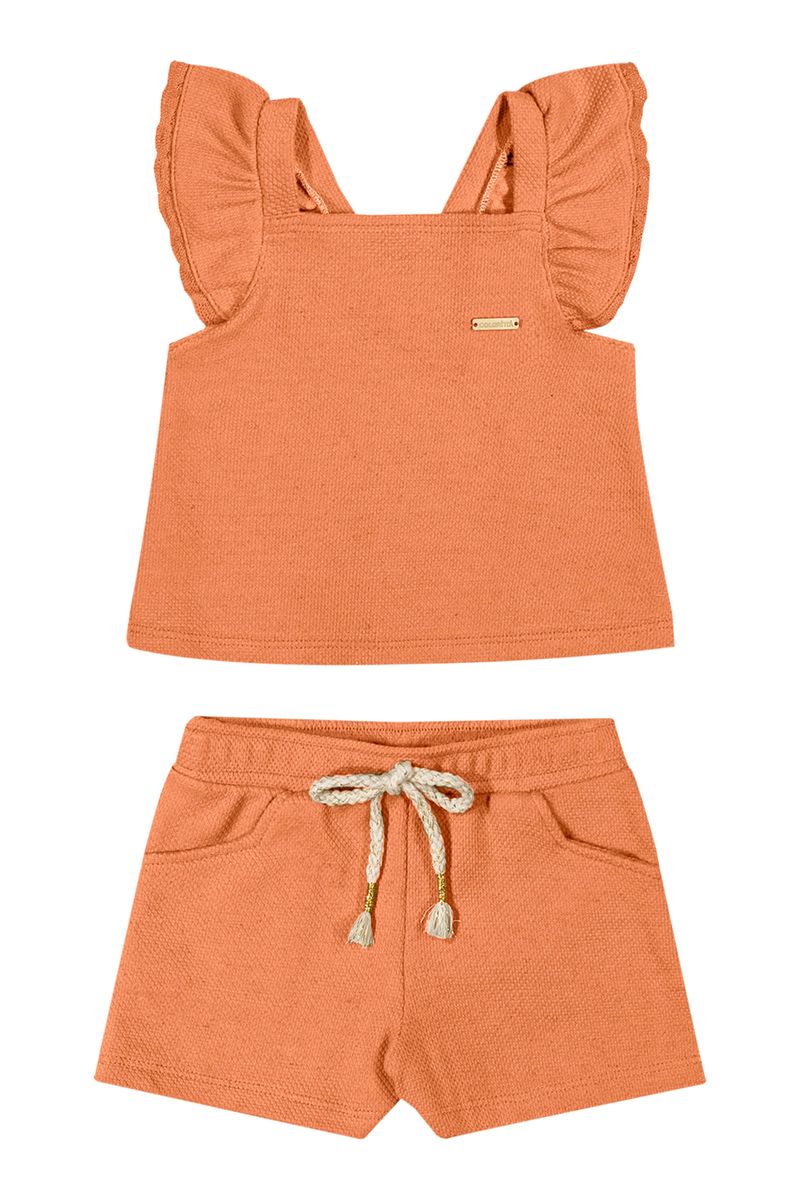 Conjunto Infantil Menina Linho Colorittá Laranja REF: 73283-3071