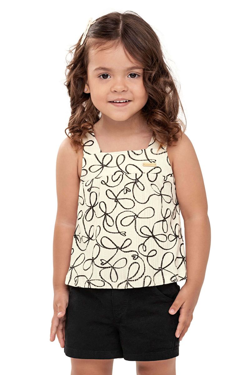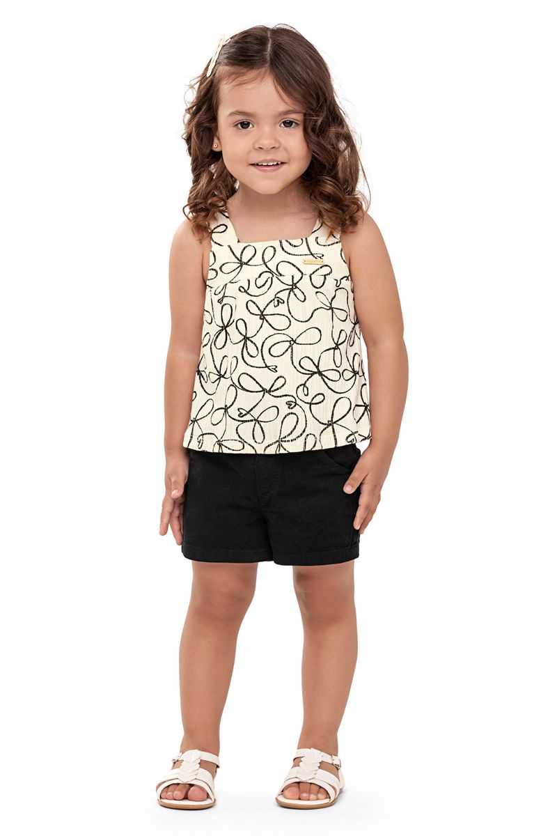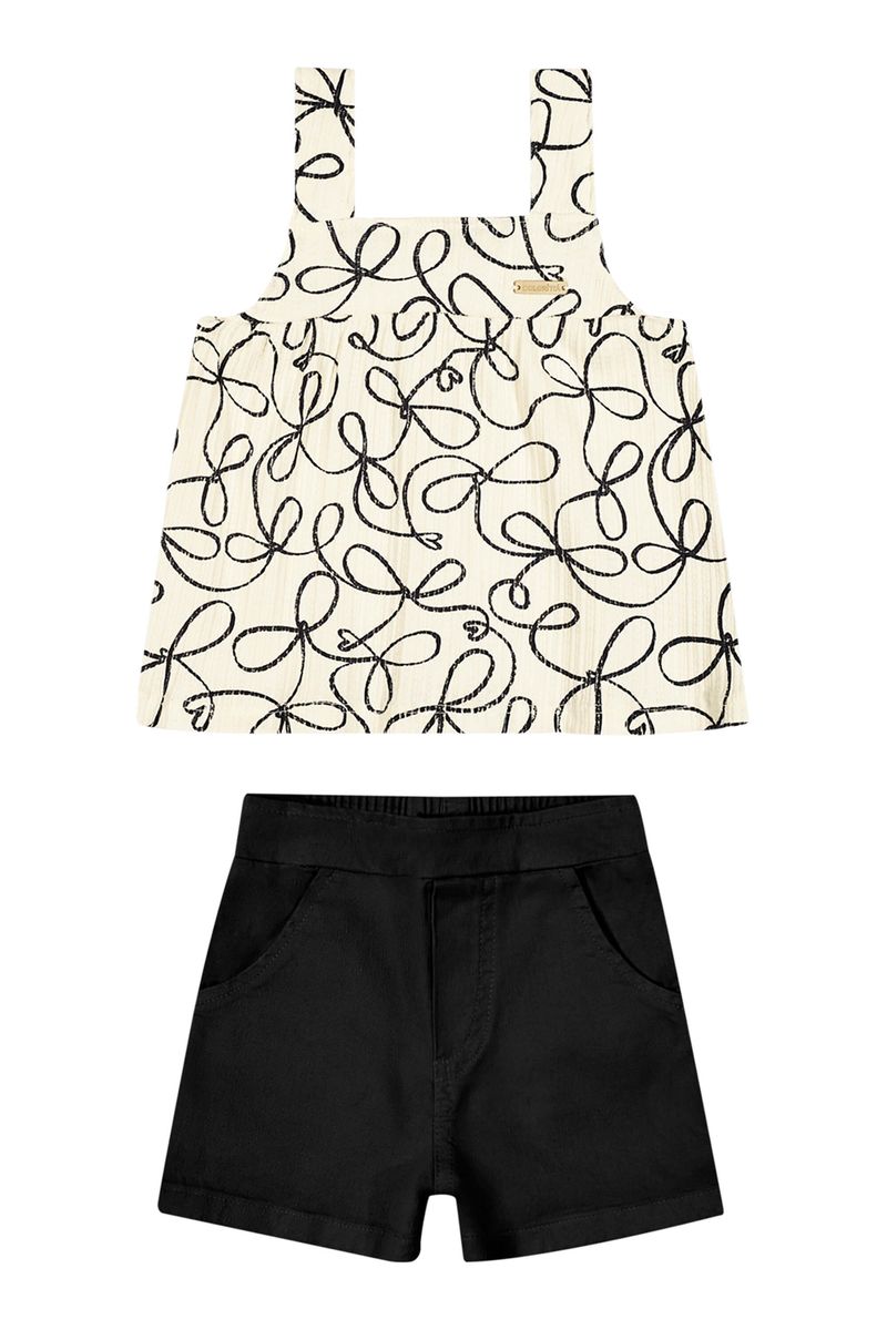 • Conjunto composto por regata e short • Feito em malha canelada trabalhada e sarja com elastano • Modelagem soltinha • Estampa de laços desenhados • Elástico no cós • Possui bolsos • Ideal para passeios em família, festinhas e momentos especiais