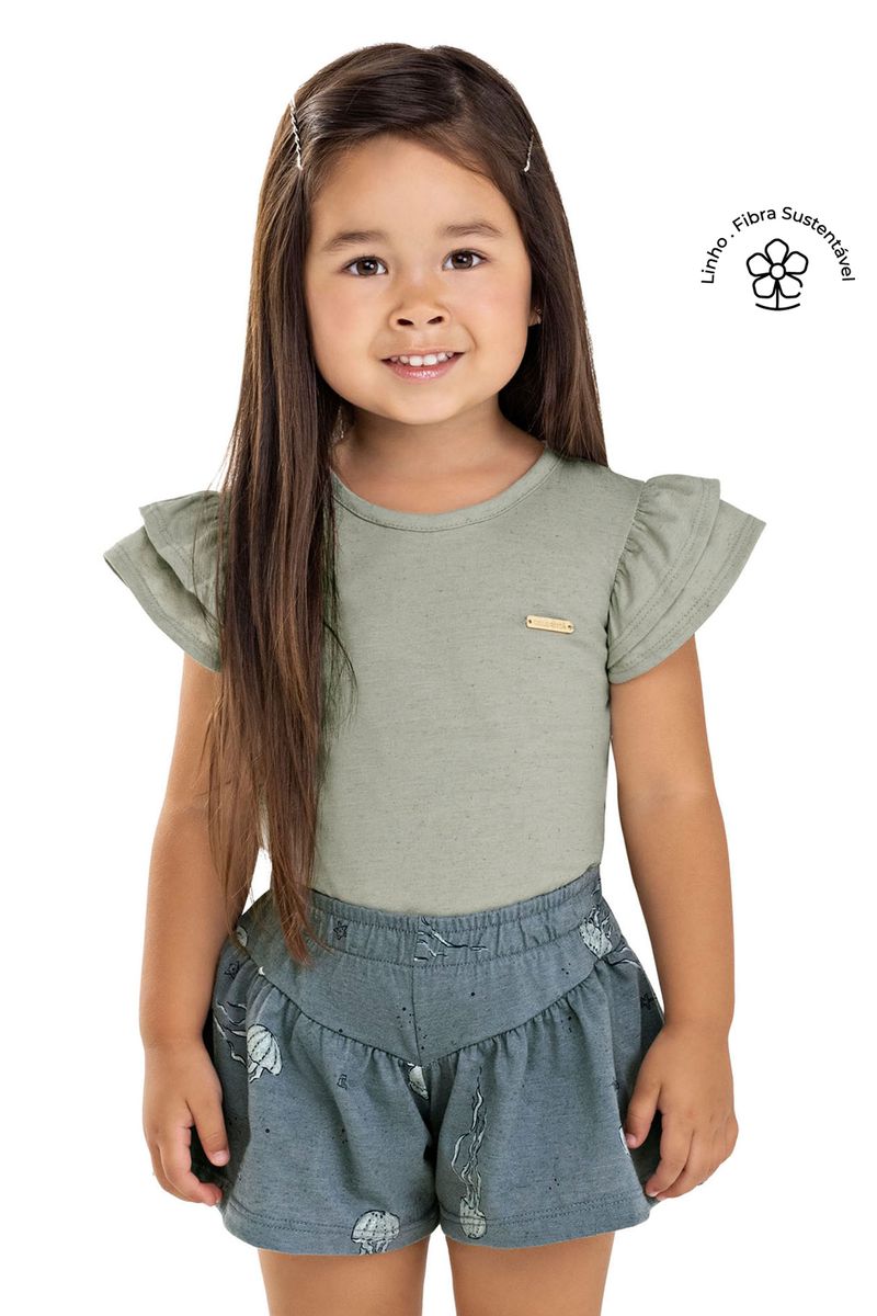 • Conjunto composto por blusa e short • Feito em malha eco linho e malha linho • Possui mangas curtas com sobreposição • Elástico no cós • Estampa de águas-vivas • Detalhe com recorte franzido • Ideal para momentos de lazer e encontros em família
