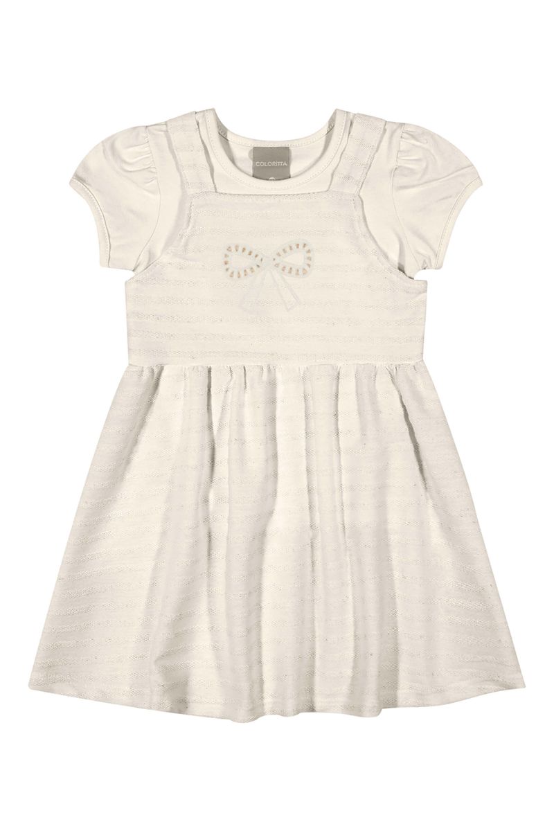 • Conjunto composto por blusa e vestido • Feito em cotton leve e malha linho listrado • Blusa com mangas curtas • Vestido com alças • Modelagem soltinha • Possui bordado vazado de laço • Ideal para momentos em família e passeios