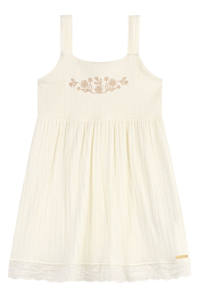 • Feito em malha canelada trabalhada • Possui alças • Modelagem soltinha • Possui detalhe em bordado • Possui acabamento em laise vazado na barra • Ideal para momentos especiais