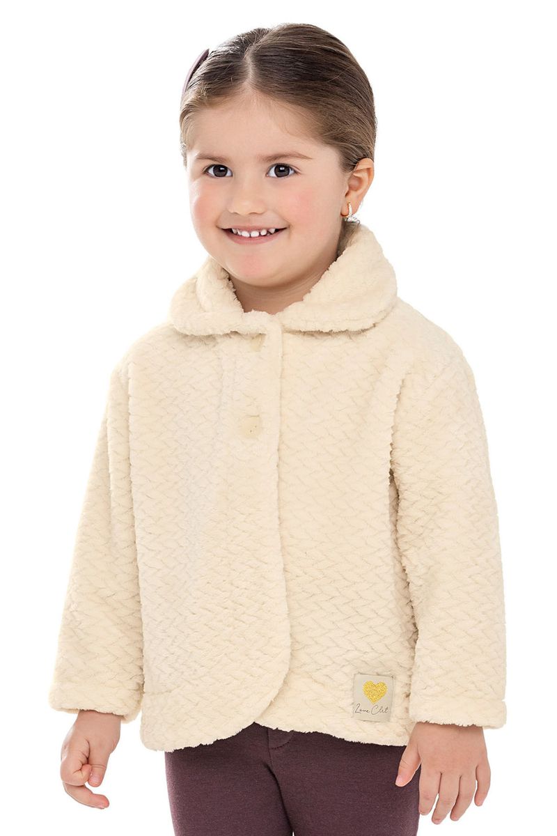 • Feito em pelo trançado • Mangas longas com ombro deslocado • Fechamento em botão • Etiqueta decorativa • Ideal para passeios e eventos especiais