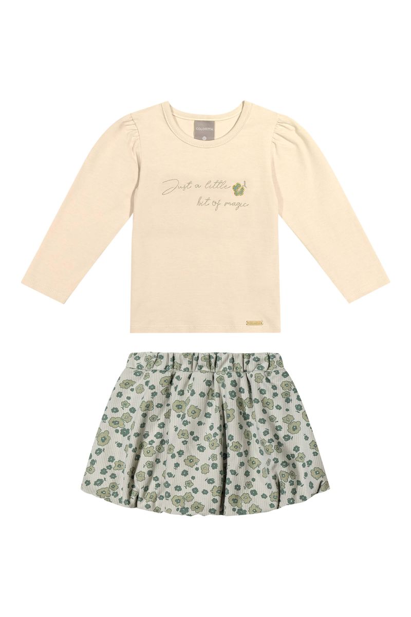• Conjunto composto por blusa e saia • Feito em cotton leve e molecotton canelado sem felpa • Possui mangas longas com franzidos • Bordado com fio lurex • Saia em modelagem balonê e estampa floral • Elástico no cós • Possui short interno • Ideal para passeios ou momentos especiais