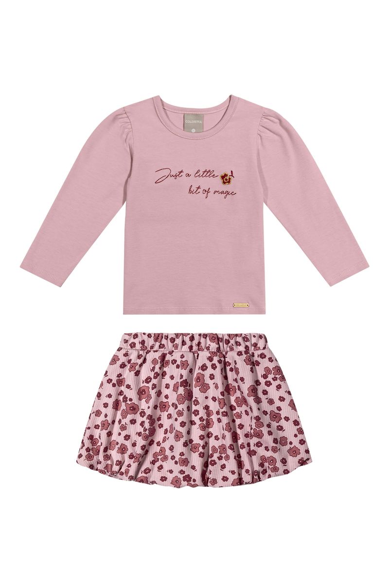 • Conjunto composto por blusa e saia • Feito em cotton leve e molecotton canelado sem felpa • Possui mangas longas com franzidos • Bordado com fio lurex • Saia em modelagem balonê e estampa floral • Elástico no cós • Possui short interno • Ideal para passeios ou momentos especiais