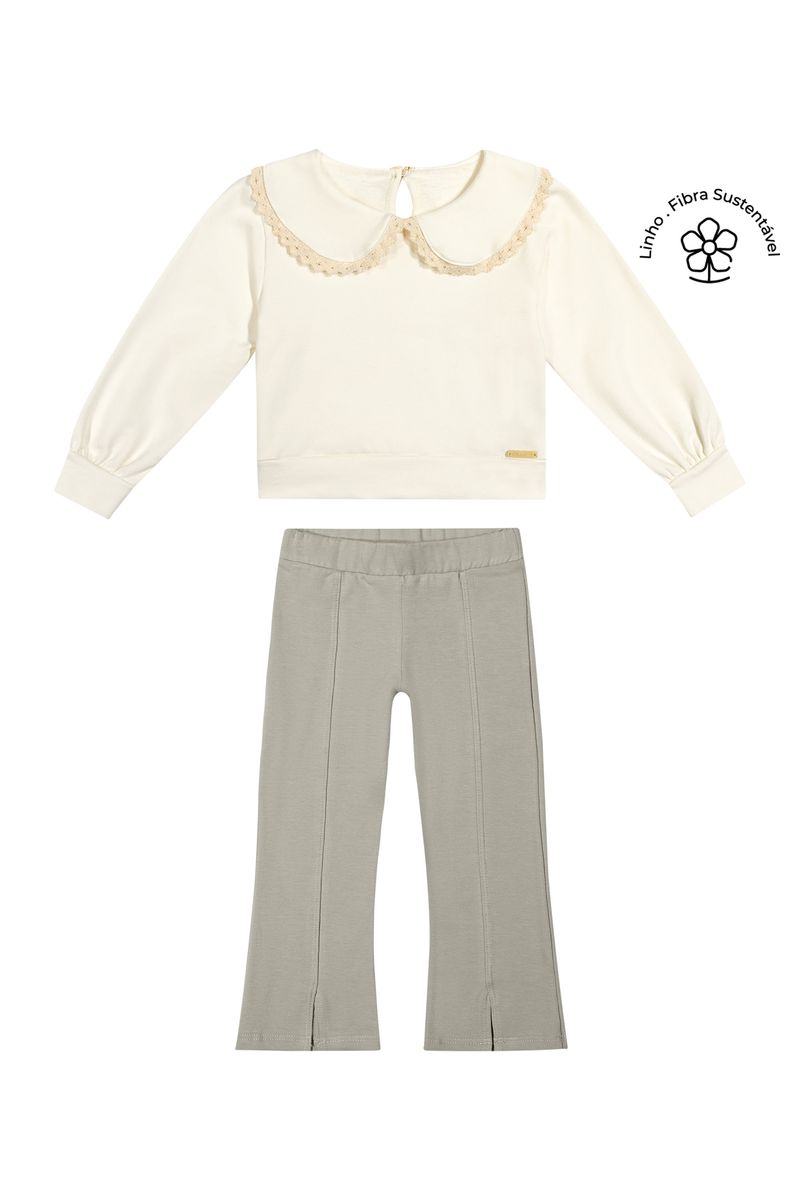 InfantilMeninasConjuntos MeninasConjunto Infantil Menina Gola Com Renda Colorittá Bege