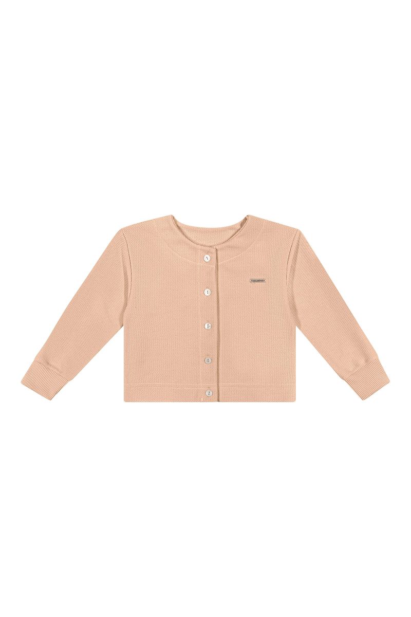 • Feito em moletom jacquard sem felpa • Possui mangas longas • Abertura frontal em botões • Textura diferenciada • Ideal para usar com vestidos, blusas e camisetas