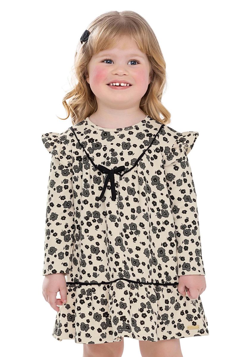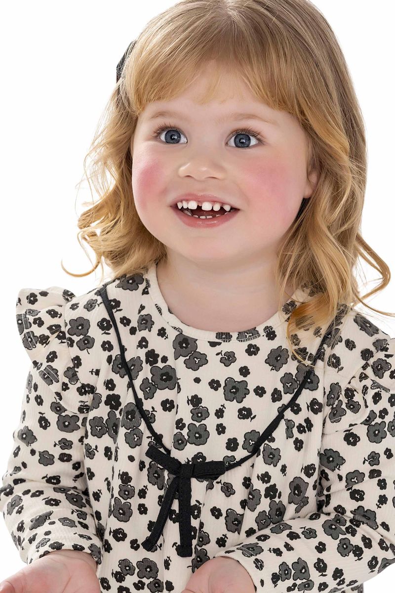 • Feito em molecotton canelado sem felpa • Possui mangas longas com babados nos ombros • Fechamento em botão nas costas • Com babado na barra • Estampa floral e detalhe em laço • Ideal para eventos especiais