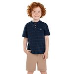 • Conjunto composto por camiseta e bermuda • Feito em piquet trabalhado e sarja com elastano • Possui gola padre com abertura em botões • Possui padronagem listrada • Elástico no cós • Possui bolsos • Ideal para ocasiões especiais