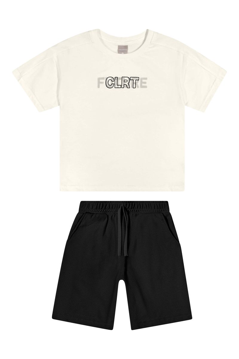 • Conjunto composto por camiseta e bermuda • Feito em meia malha e moletom sarjado • Possui mangas curtas • Estampa com bordado sobreposto • Elástico no cós • Possui bolsos • Ideal para momentos descontraídos e passeios