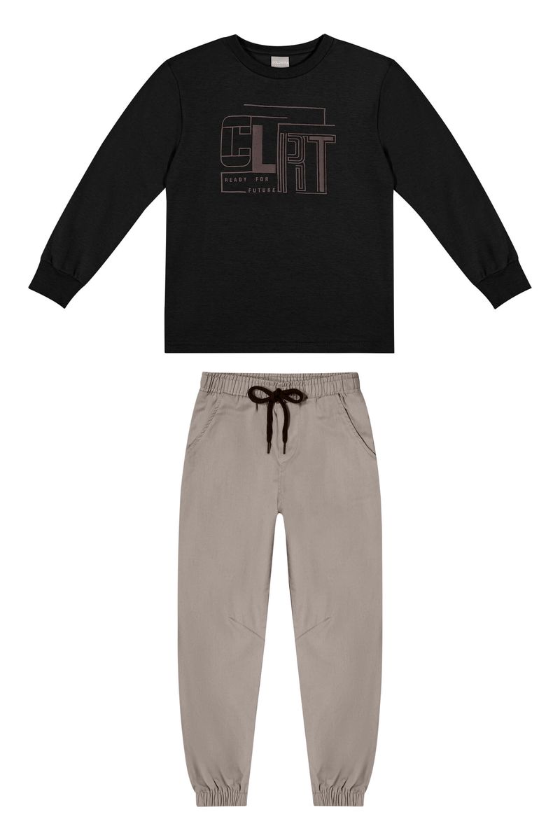 • Conjunto composto por camiseta e calça • Feito em suedine e sarja • Possui mangas longas • Estampa em 3D • Elástico no cós • Possui bolsos • Ideal para ocasiões descontraídas