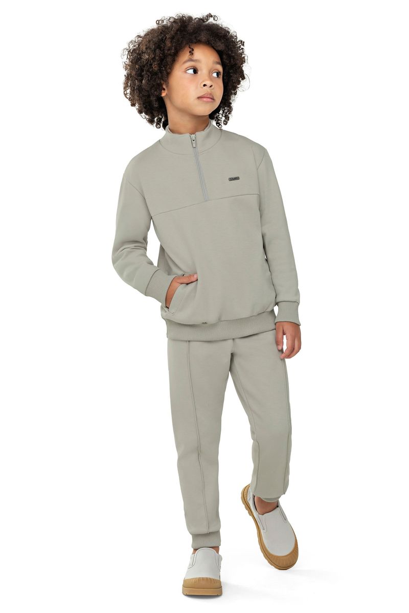 • Conjunto composto por blusão e calça • Feito em moletom ponto roma • Possui mangas longas • Possui gola alta com abertura em zíper • Possui bolsos • Elástico no cós • Ideal para passeios ao ar livre ou viagens
