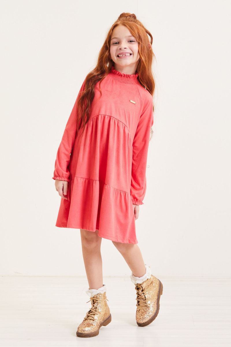 InfantilMeninasVestidos MeninasVestido Infantil Menina Gola Alta Colorittá Rosa