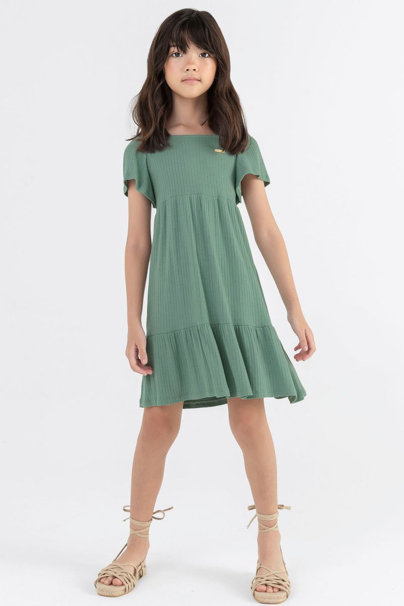 Vestido Infantil Menina Canelado Verde Colorittá REF: 75155-5249