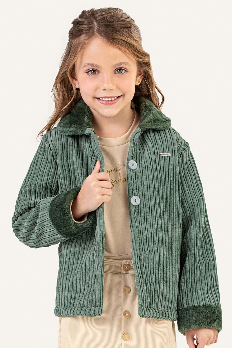 Casaco Infantil Menina Pelúcia Canelada Colorittá Verde REF: 75258-5098