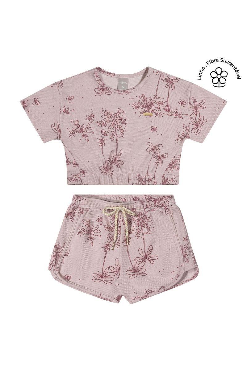 Conjunto Infantil Menina Dupla Face Linho Colorittá Rosa REF: 75266-4117