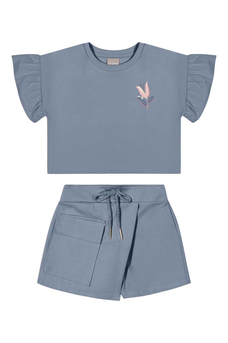 Conjunto Infantil Menina Flor Bordado Colorittá Azul REF: 75269-6131