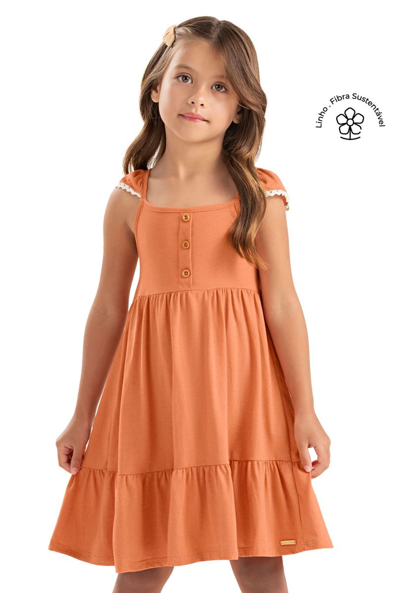 InfantilMeninasVestidos MeninasVestido Infantil Malha Linho Menina Colorittá Laranja