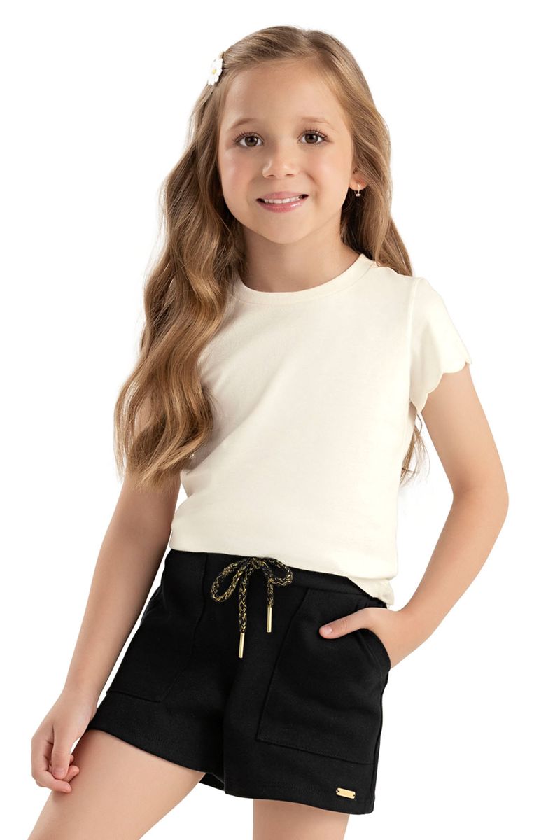 Short Infantil Menina Moletom Com Bolsos Colorittá Preto REF: 75273-7001