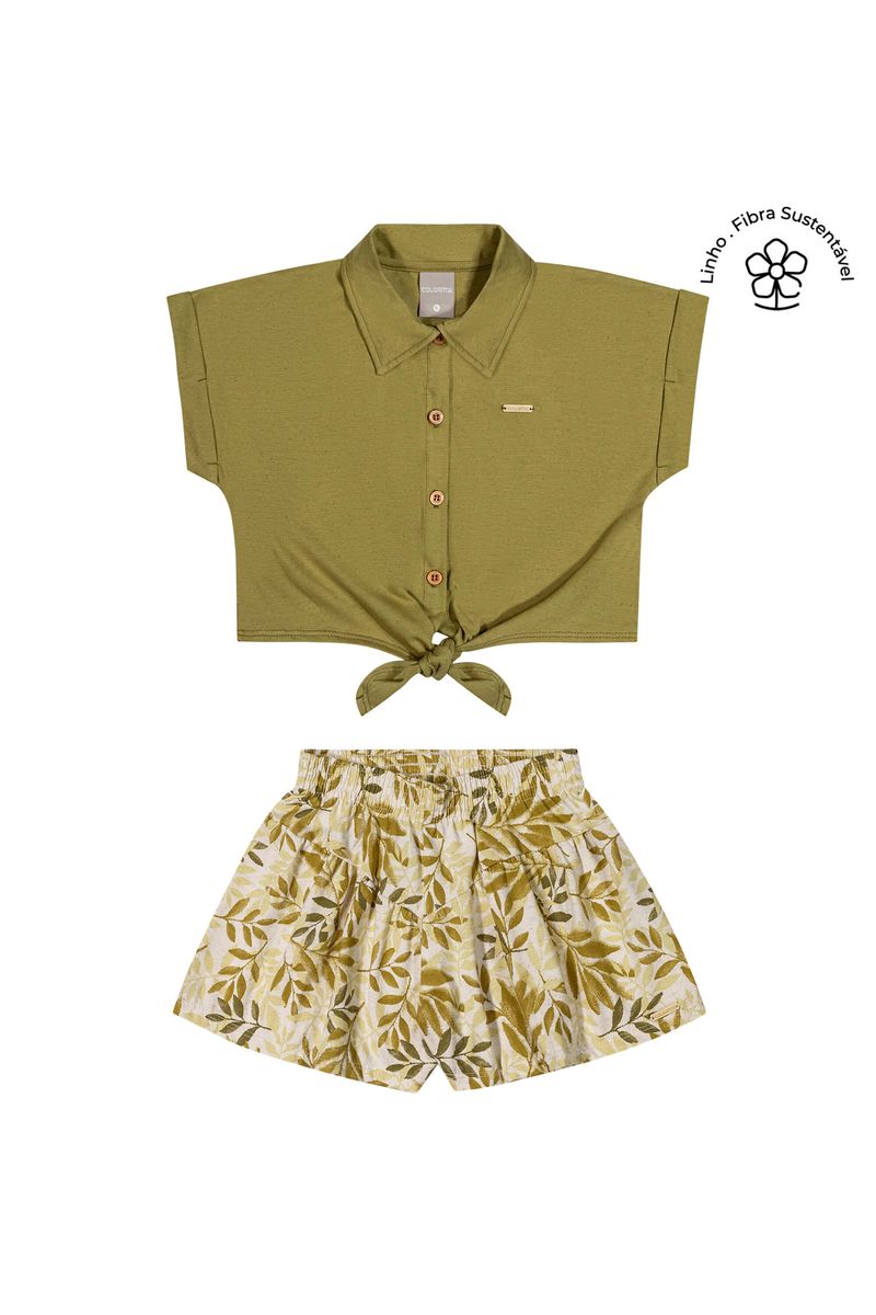 InfantilMeninasConjuntos MeninasConjunto Infantil Menina Malha Linho Colorittá Verde