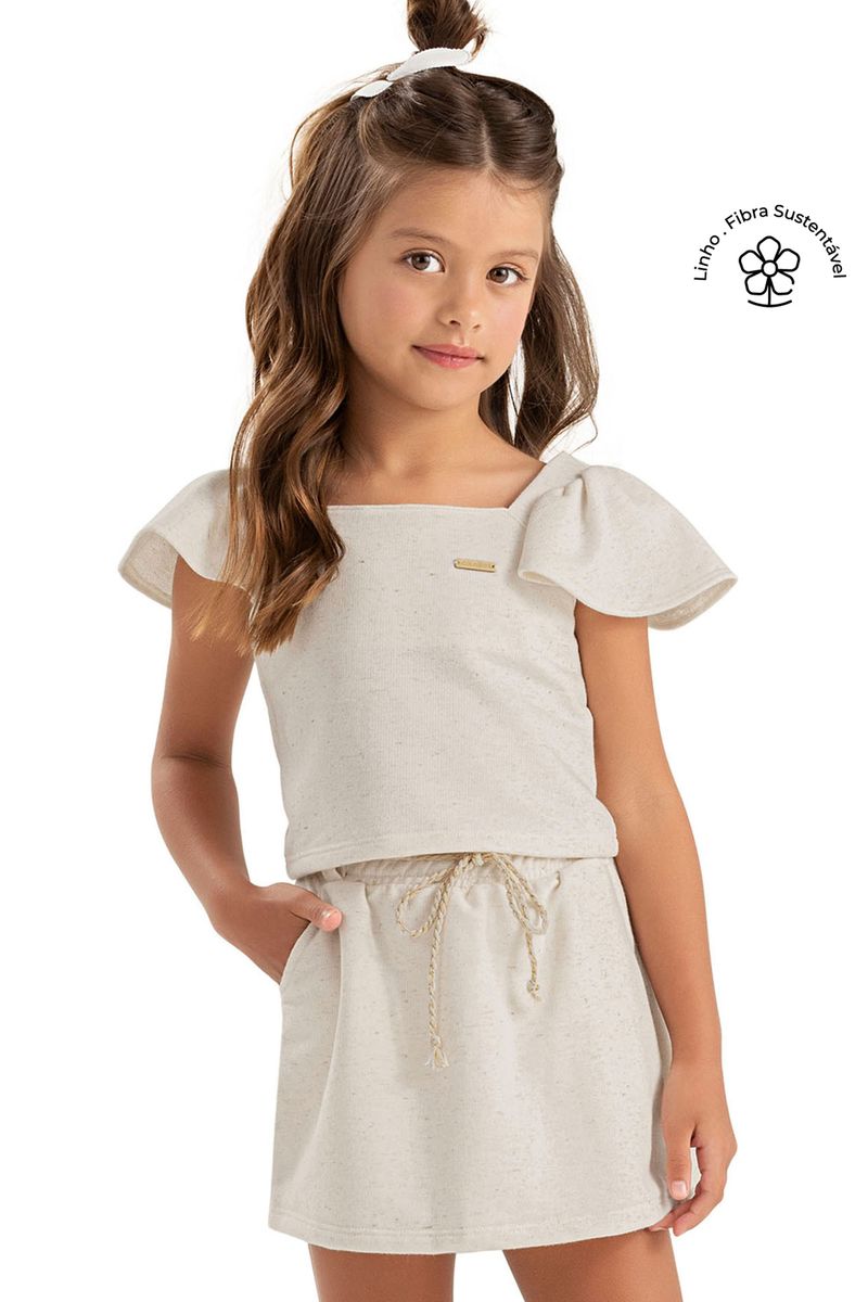 InfantilMeninasConjuntos MeninasConjunto Infantil Menina Moletinho Linho Colorittá Bege
