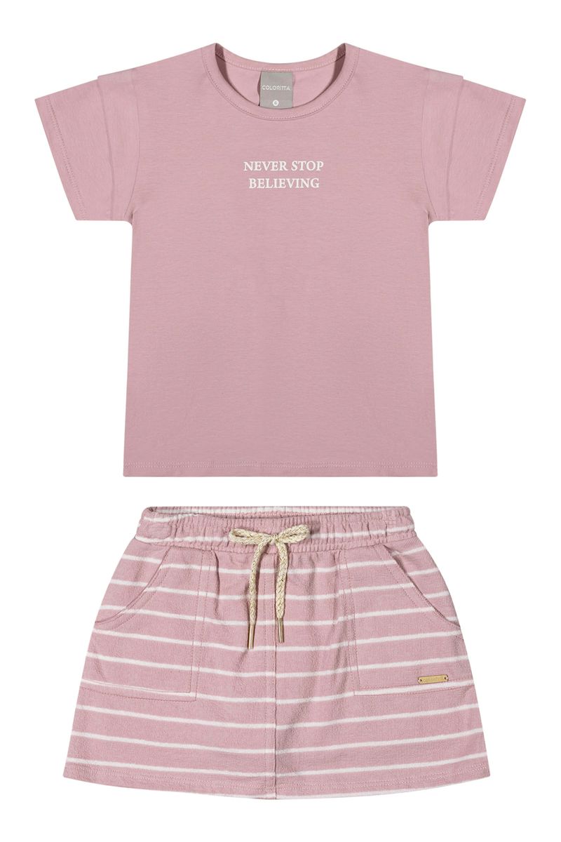 InfantilMeninasConjuntos MeninasConjunto Infantil Menina Listras Colorittá Rosa