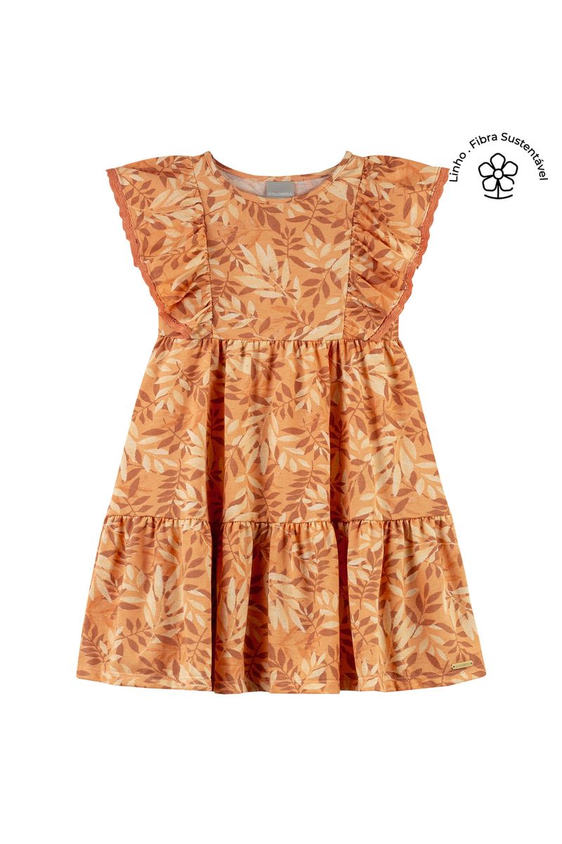 Vestido Infantil Menina Folhas Colorittá Laranja REF: 75293-3071