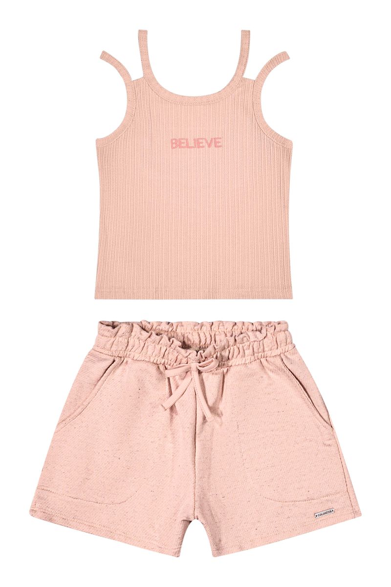 • Conjunto composto por regata e short • Feito em malha canelada trabalhada e moletom eco linho • Possui alças duplas • Possui bordado • Elástico no cós • Possui bolsos • Ideal para passeios e momentos com as amigas