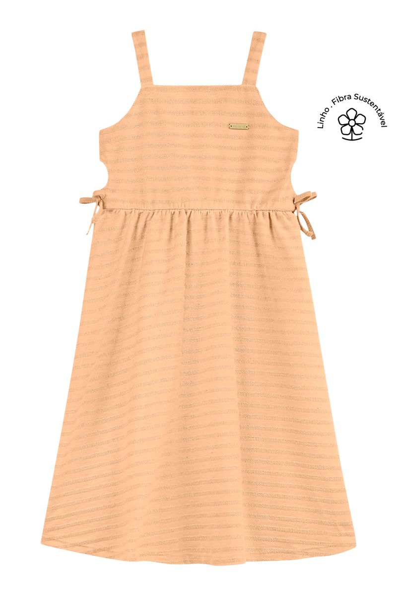 • Feito em malha linho listrado • Modelagem soltinha • Possui alças • Possui abertura nas laterais • Detalhes com laços • Ideal para almoços em família e eventos casuais
