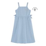 • Feito em malha linho listrado • Modelagem soltinha • Possui alças • Possui abertura nas laterais • Detalhes com laços • Ideal para almoços em família e eventos casuais