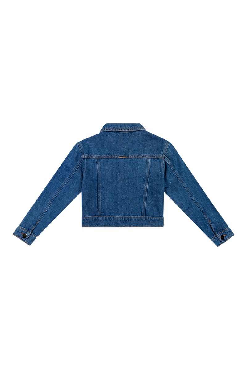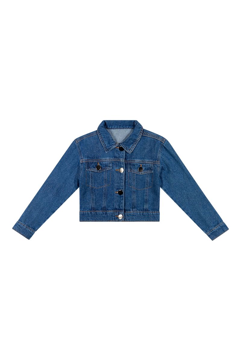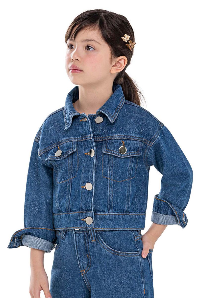• Feita em jeans • Possui mangas longas • Abertura frontal em botões • Detalhe decorativo em lapela • Detalhe em glitter • Ideal para usar com vestidos, saias ou calças