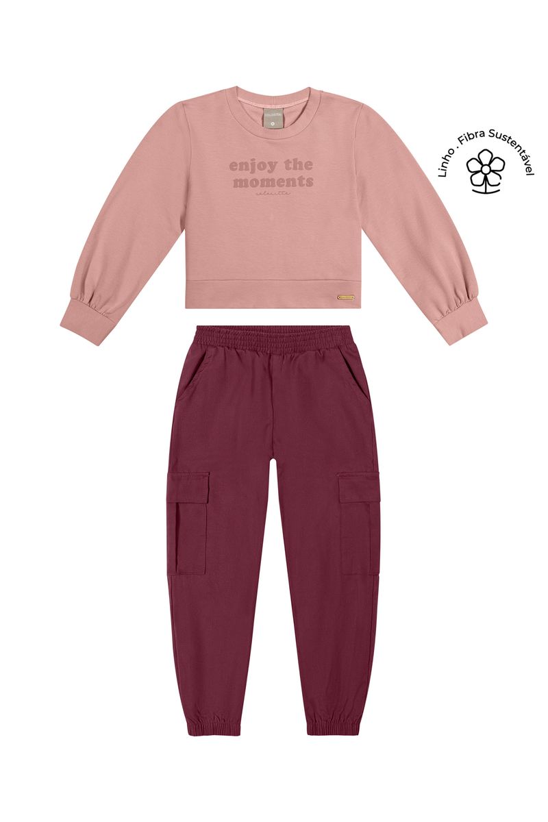 • Conjunto composto por blusão e calça • Feito em malha linho sarjada e sarja • Possui mangas longas franzidos nos punhos • Estampa com detalhe em puff • Elástico no cós • Possui bolsos • Ideal para momentos de lazer