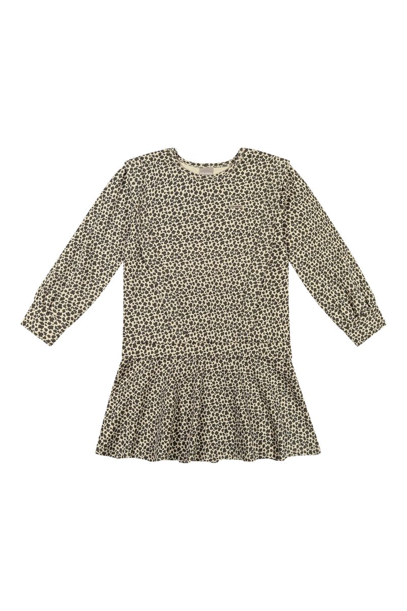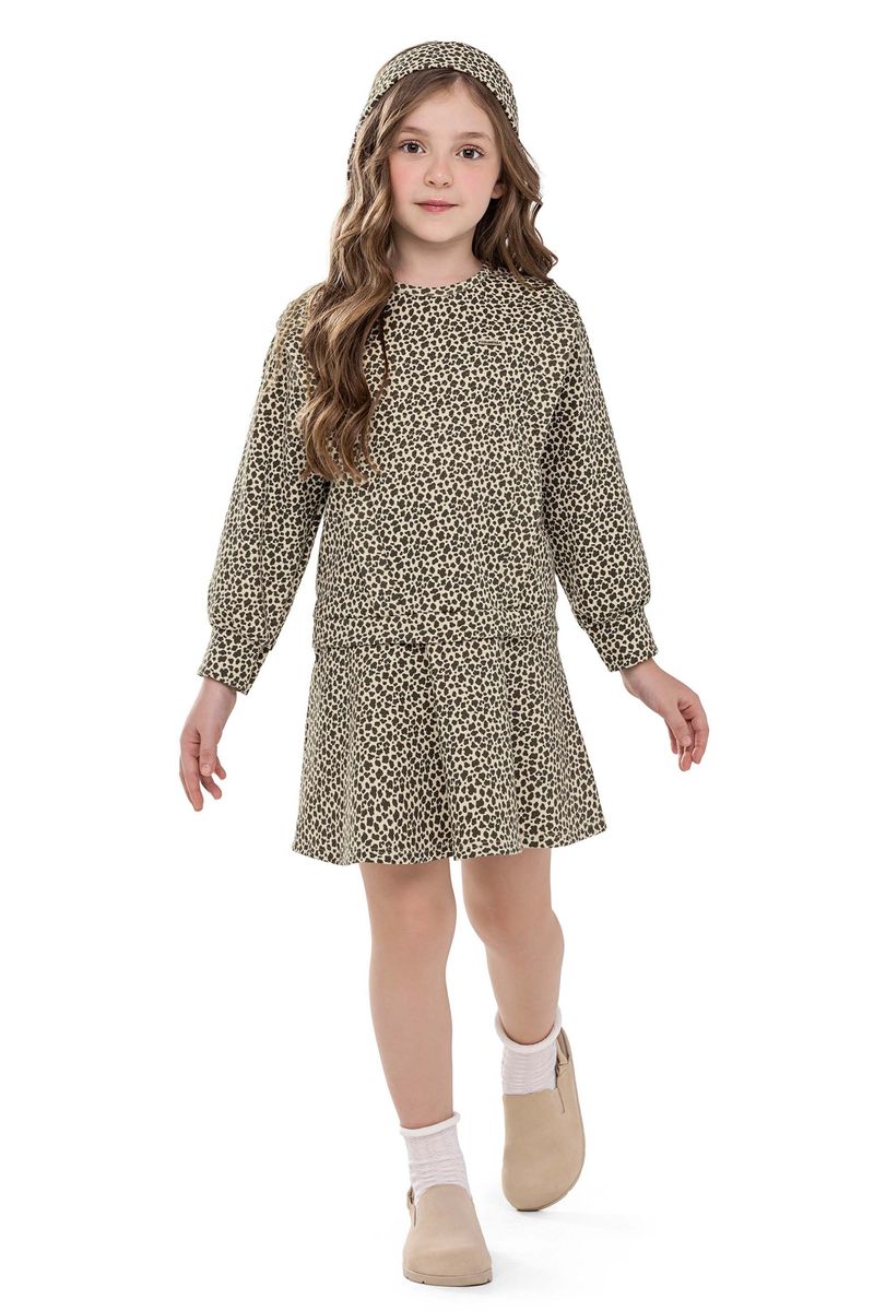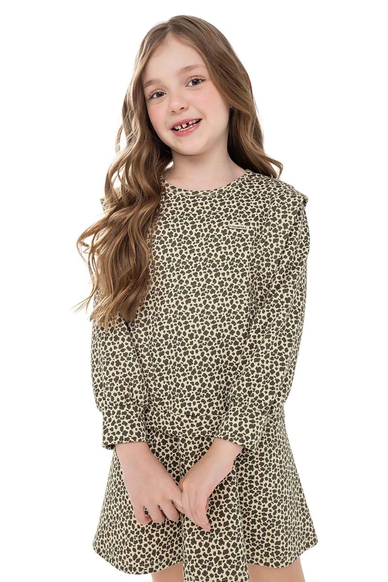 • Feito em moletom ponto roma • Possui mangas longas bufantes • Modelagem soltinha com recorte godê • Recorte frontal em V formando babados • Estampa animal print • Ideal para aniversários, eventos ou ocasiões especiais
